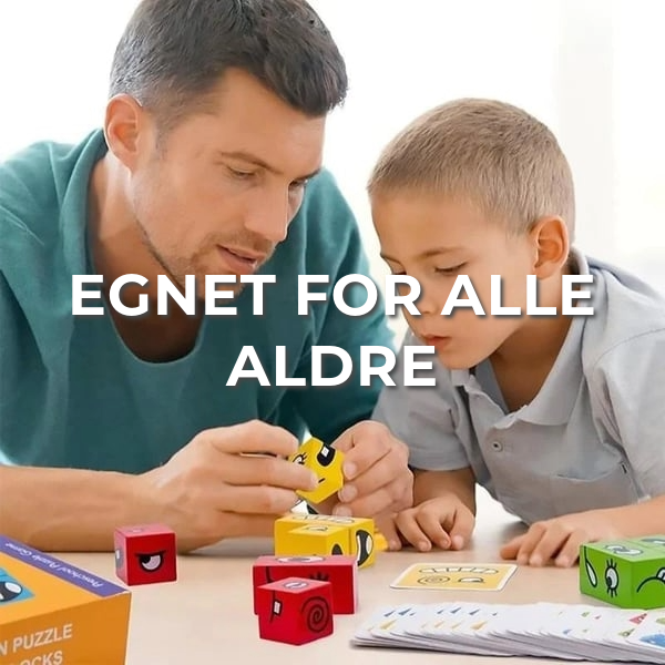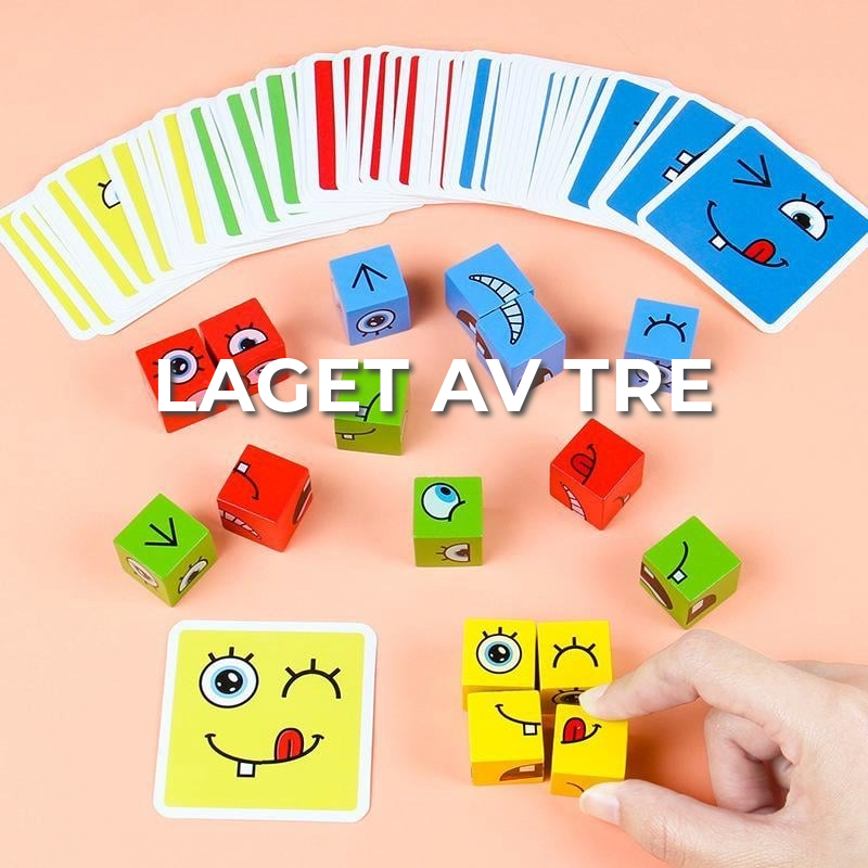 Lag unike ansikter med de allsidige klossene! Barn og voksne kan uttrykke seg kreativt ved å blande og matche ansiktstrekk.
