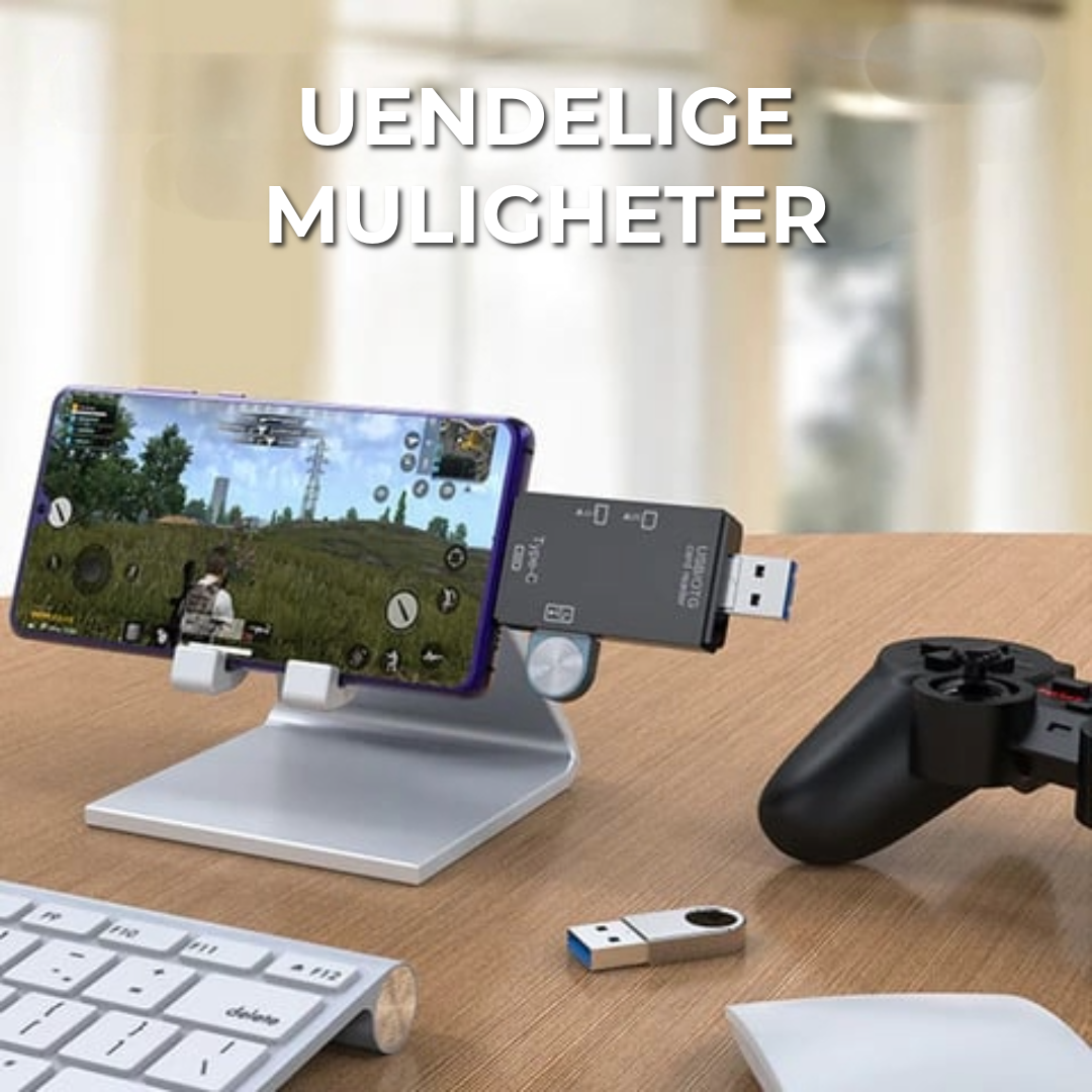 Gjør livet enklere med 6-i-1 kortleseren – den ultimate løsningen for rask, effektiv og sikker dataoverføring! Enten du overfører bilder, videoer eller viktige dokumenter, sikrer denne kompakte og bærbare enheten enkel tilkobling mellom minnekortene dine og alle enhetene dine.