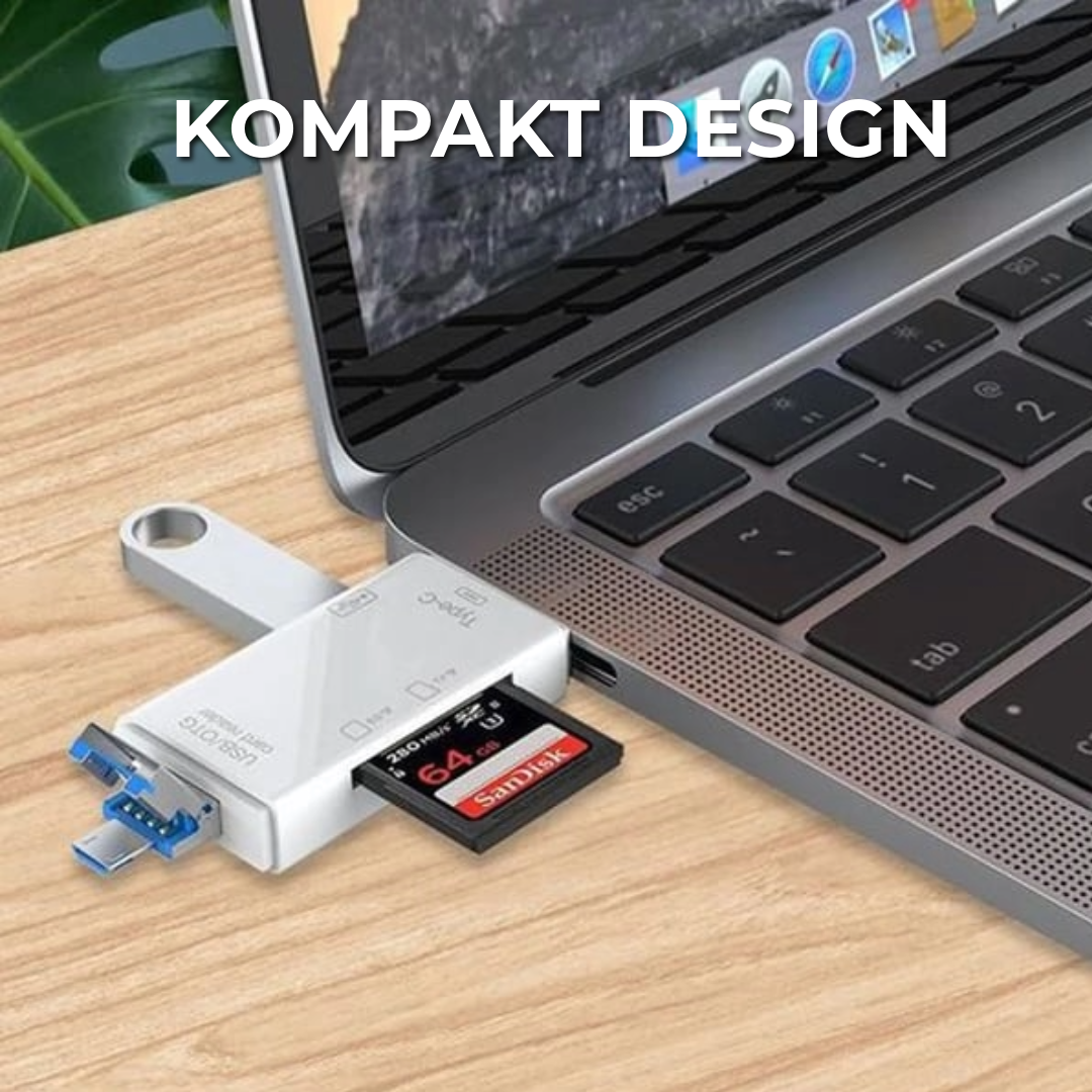Med 6-i-1 funksjonalitet kan du enkelt lese alle kort og enheter, fra SD-kort til bærbare datamaskiner og smarttelefoner, i et kompakt design. Ingen ekstra verktøy nødvendig – vær stolt av et smart, allsidig valg som gjør livet enklere!