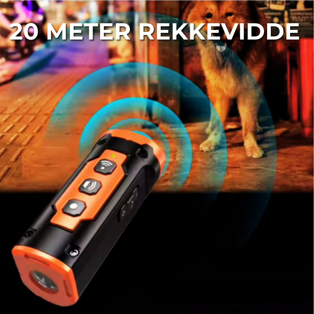 Sjokkhalsbånd og harde straffer kan gjøre hunden din engstelig og stresset. Dette anti-bjeffeapparat bruker 100% trygge og dyrevennlige lydbølger for å umiddelbart fange hundens oppmerksomhet og stoppe uønsket atferd – uten smerte eller skade.
