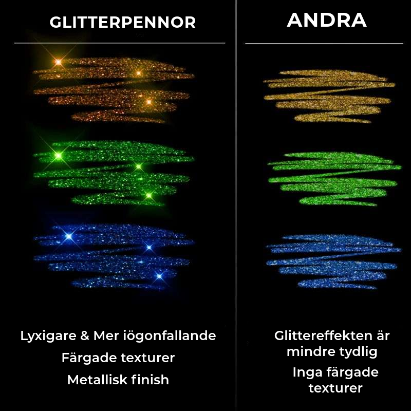 Disse pennene gjør hver enkel linje til kunst takket være glitrende blekk. Hver strek gir verkene dine en magisk følelse.