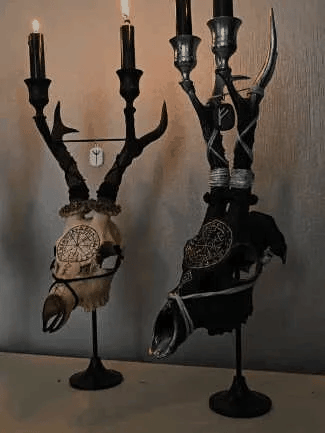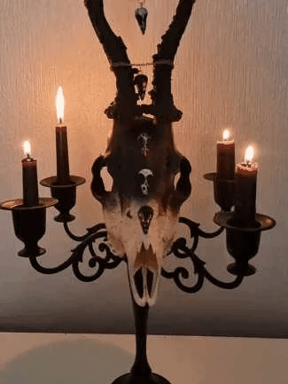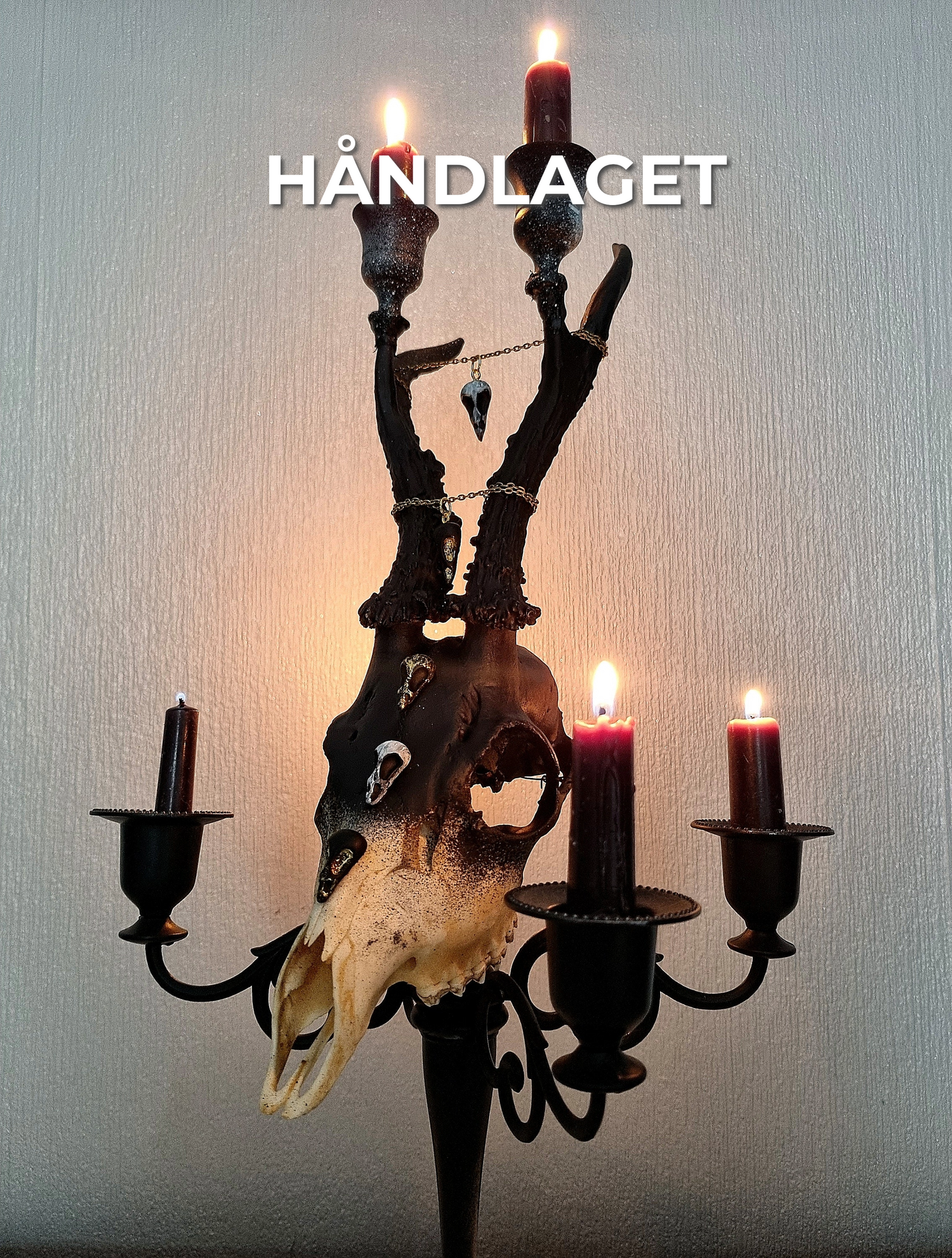 Transformér stuen din med denne imponerende lysestaken som kombinerer gotisk eleganse og mystisk symbolikk. Perfekt for å fremheve din personlige stil.
