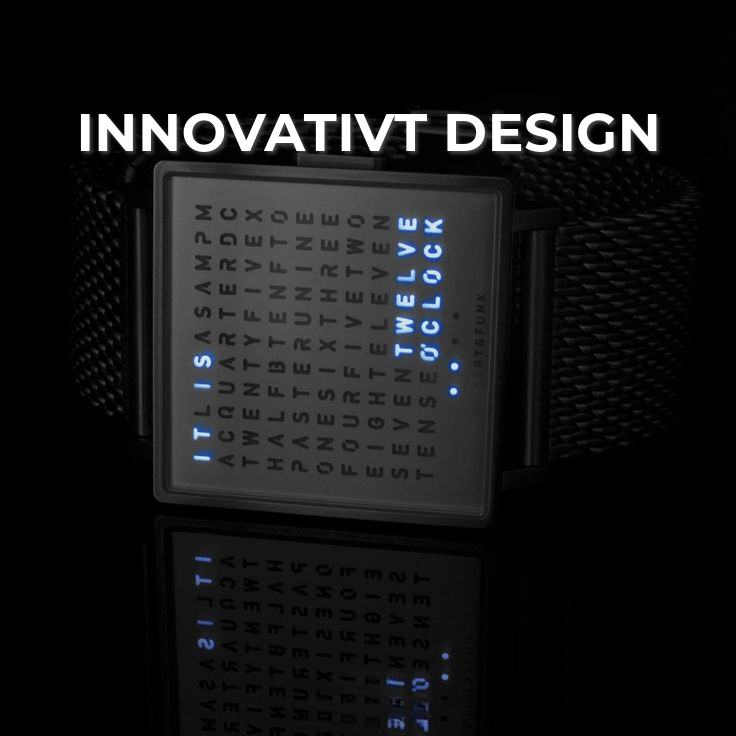 Det moderne designet med tekstvisning av tiden gjør dette uret til et must-have for de som liker en raffinert, unik stil.