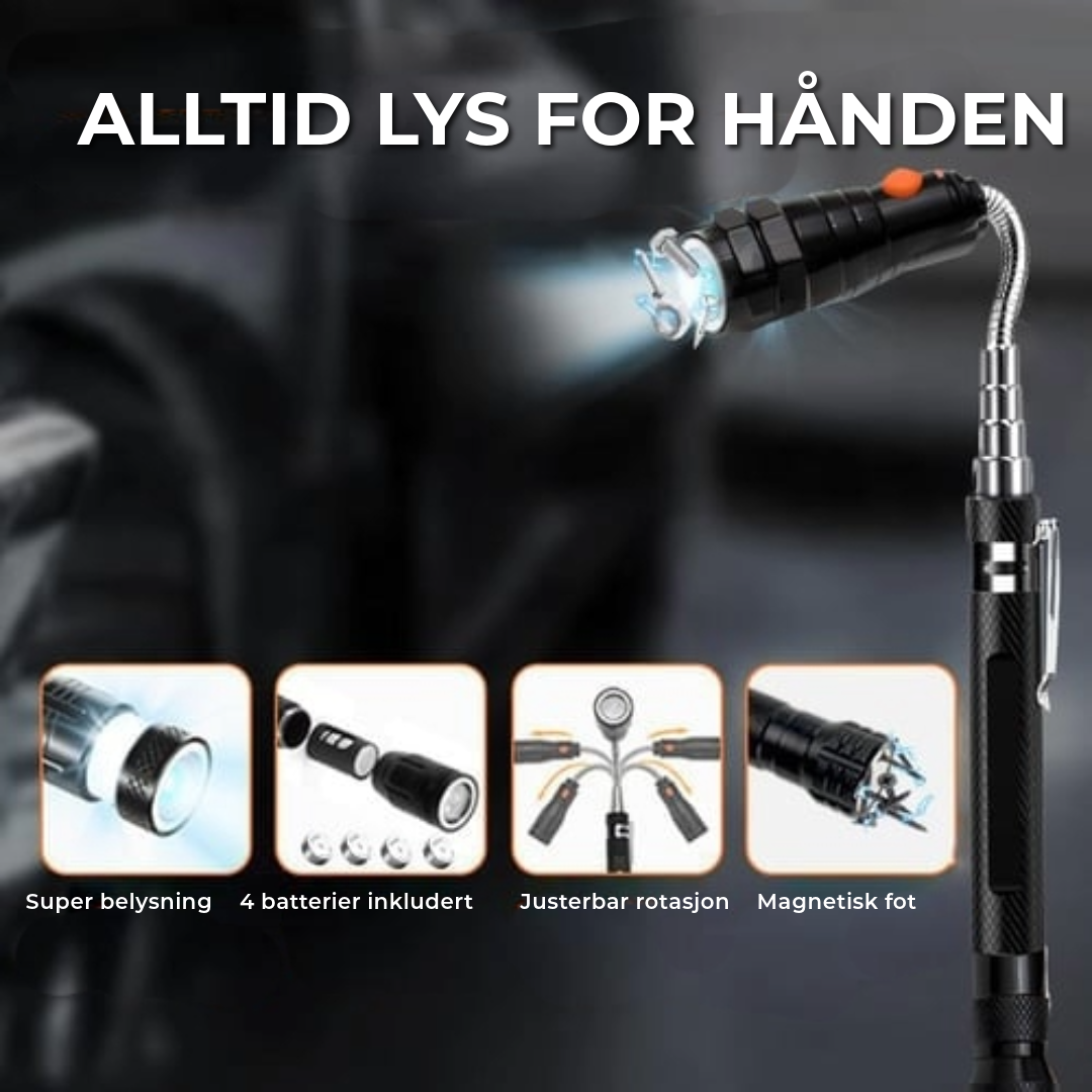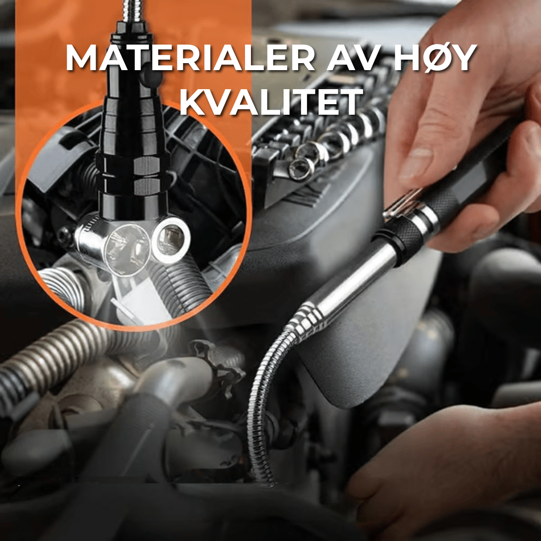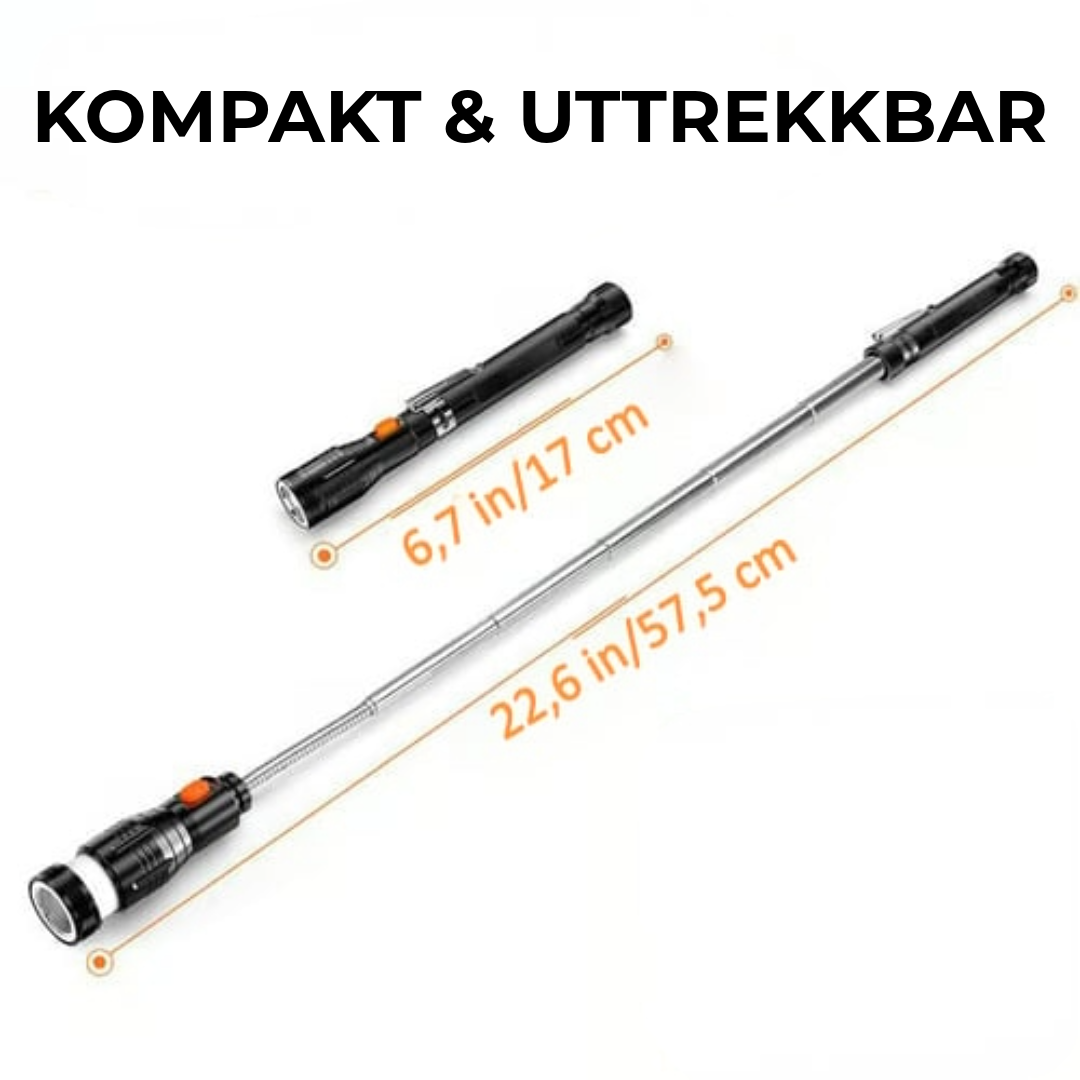 Mist aldri en skrue eller spiker igjen! Med den kraftige magnetiske hodet og foten kan du enkelt plukke opp metallgjenstander fra smale sprekker eller mørke hjørner. Ideell for garasjer, verksteder eller camping.