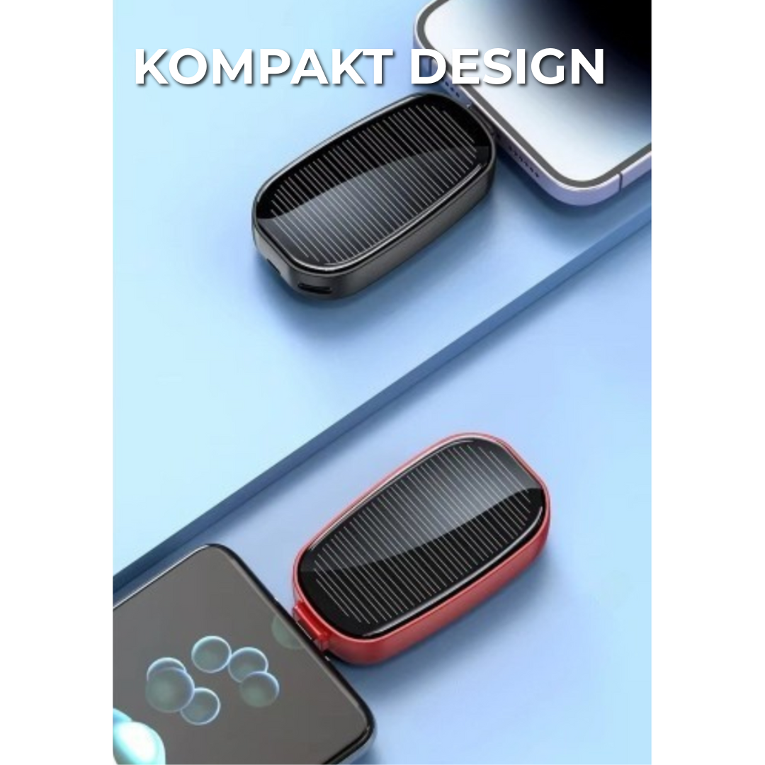 Lad enhetene dine enkelt via Lightning- eller Type-C-port – perfekt for både iPhone- og Android-brukere. Ingen stikkontakt? Ingen problem! Takket være den innebygde solcellefunksjonen kan du enkelt lade powerbanken med solenergi. På den måten er du alltid koblet til, selv på de mest avsidesliggende stedene.