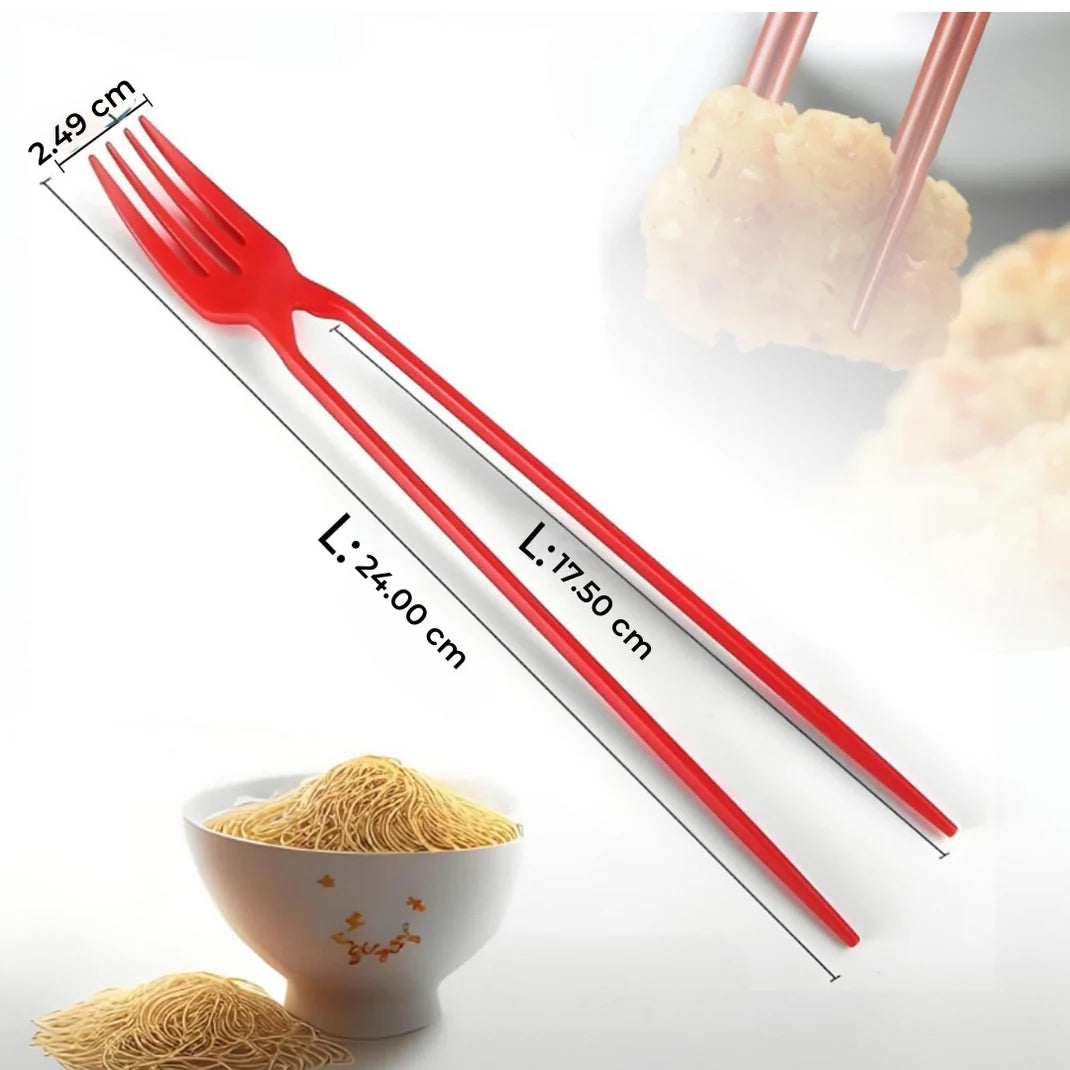 Med denne smarte kombinasjonen av gaffel og spisepinner har du alltid riktig bestikk for hånden – enten du nyter asiatiske retter eller din favorittpasta. Funksjonell, stilig og designet for komfort, gjør dette 2-i-1 bestikket hvert måltid enklere og morsommere.