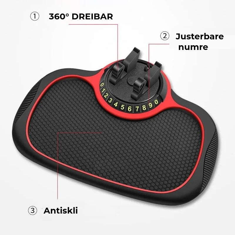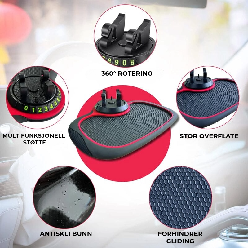 Denne matten fungerer som telefonholder, antiskli-dashboardmatte og organisator. Ideell for å holde telefonen, kortene og mye mer sikkert og organisert.