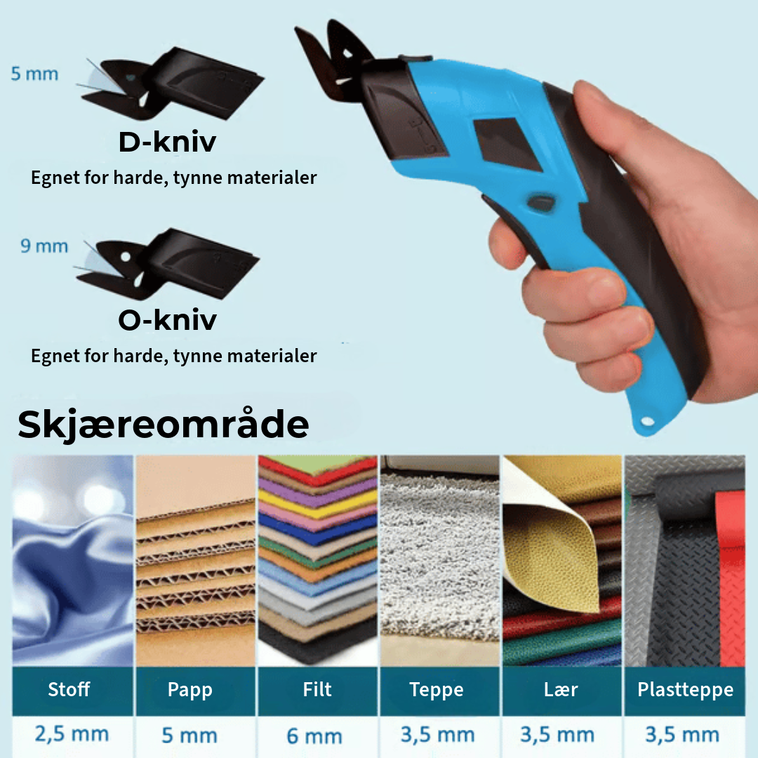 Klipp enkelt papp, stoff, lær, tepper og mer! Takket være den kraftige 3,6V-motorbladet glir saksen lett gjennom tykke og sterke materialer uten å slite ut hånden din.