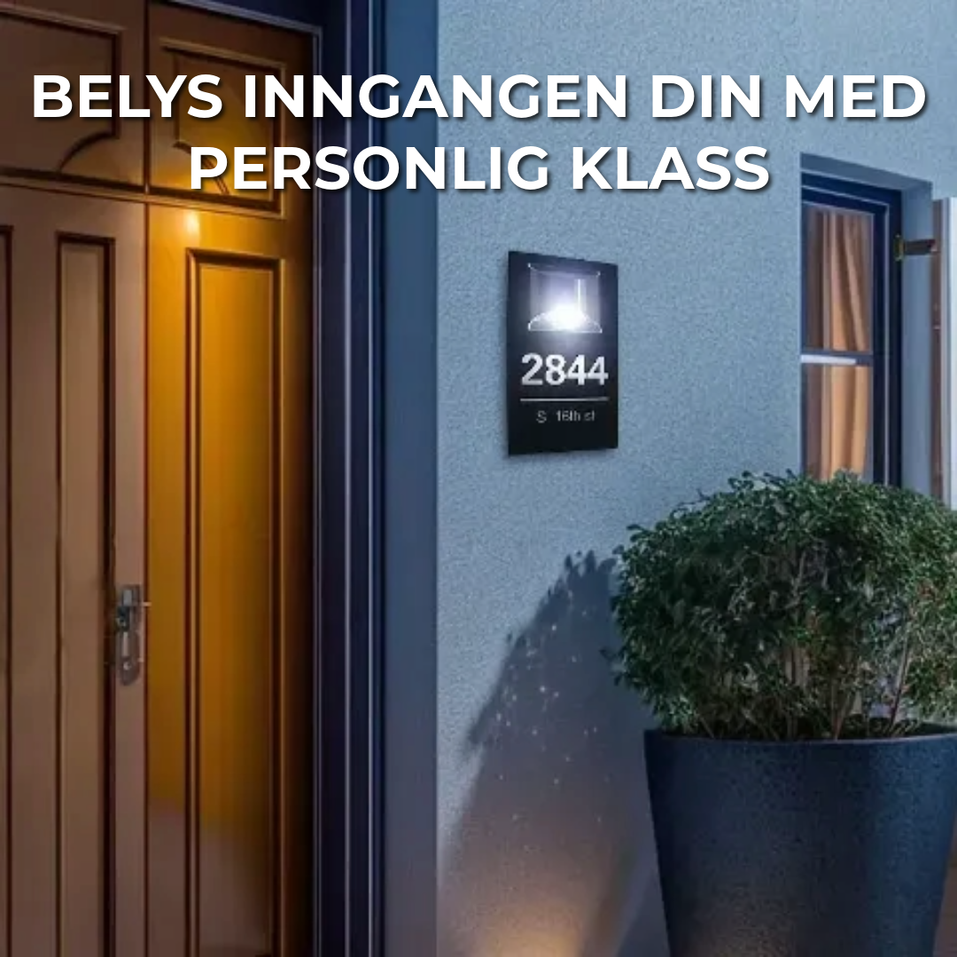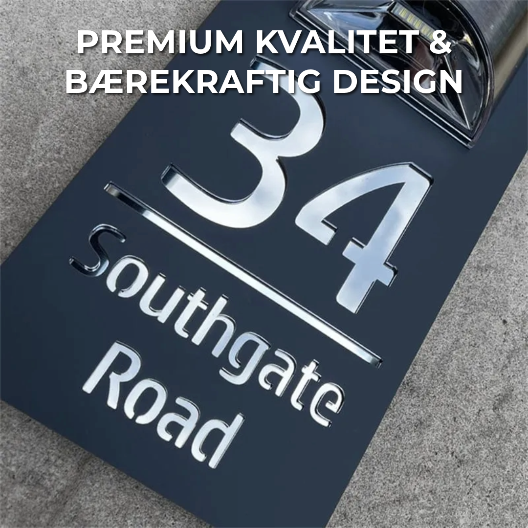 La husnummeret og gatenavnet ditt bli gravert for et unikt, moderne utseende som gir hjemmet ditt mer klasse og personlighet. Den stilrene designen med svevende effekt gjør inngangen din til et ekte blikkfang, både på dagtid og kveld.