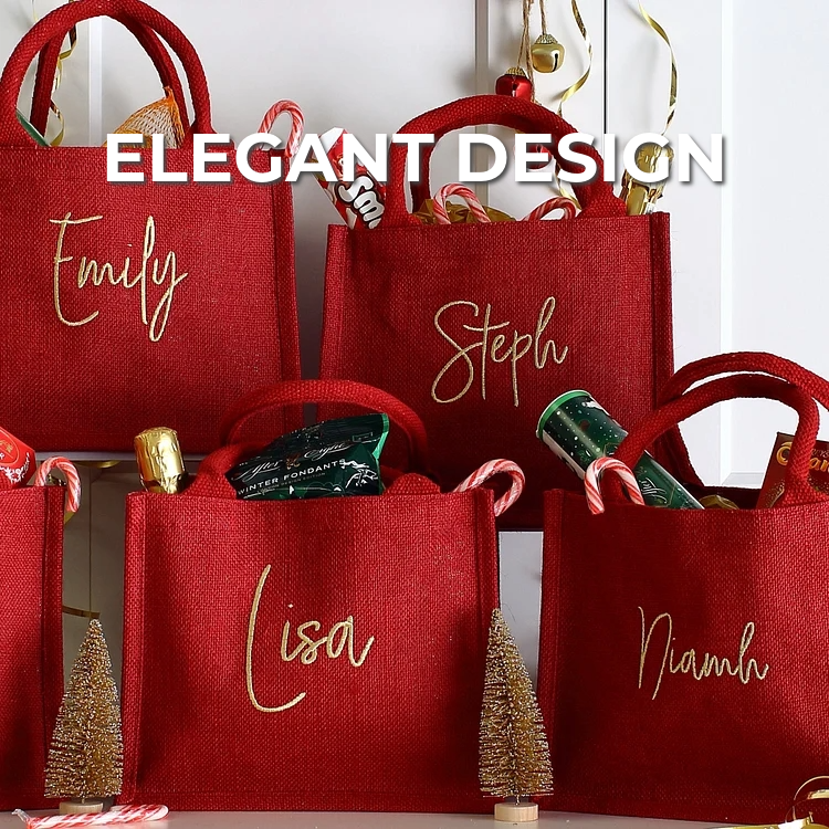 Laget av holdbar jute, perfekt for den miljøbevisste gavegiveren. Nyt en vakker, gjenbrukbar gavepose som ikke bare er stilig under juletreet, men også bidrar til å redusere avfall.