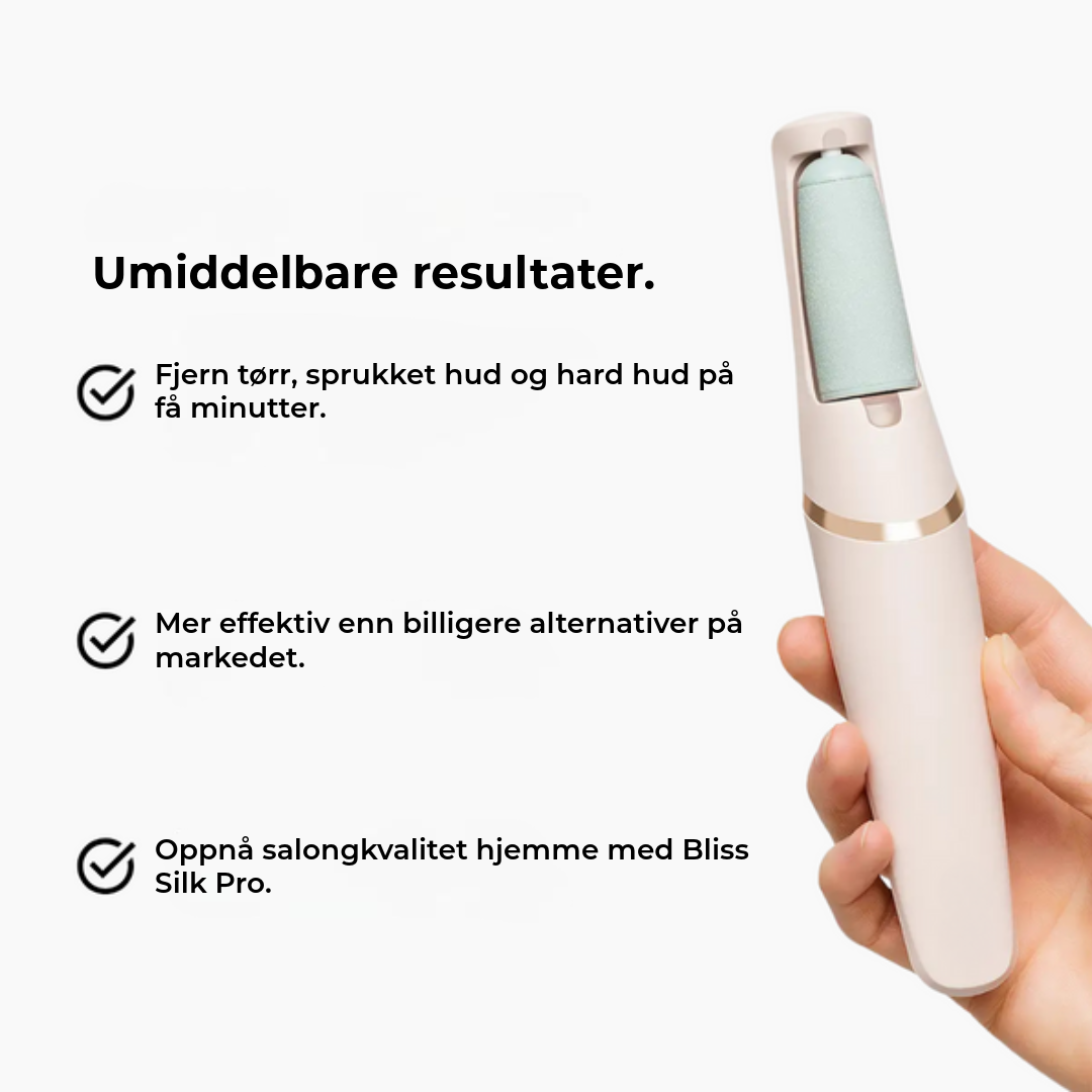 Ikke mer endeløs filing med vanskelige verktøy eller dyre salongbehandlinger! Bliss Silk Pro fjerner tørr, sprukken hud og gjenstridig hard hud uten anstrengelse, helt smertefritt.