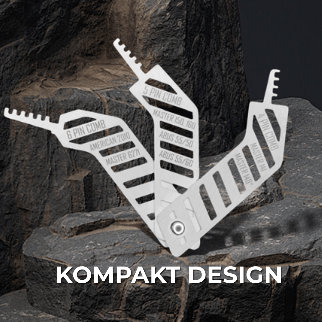 Den slanke, sammenleggbare låseåpneren passer perfekt i lommen, vesken eller hanskerommet. Ikke flere store verktøy å dra rundt på, ett verktøy som kan tas med overalt.
