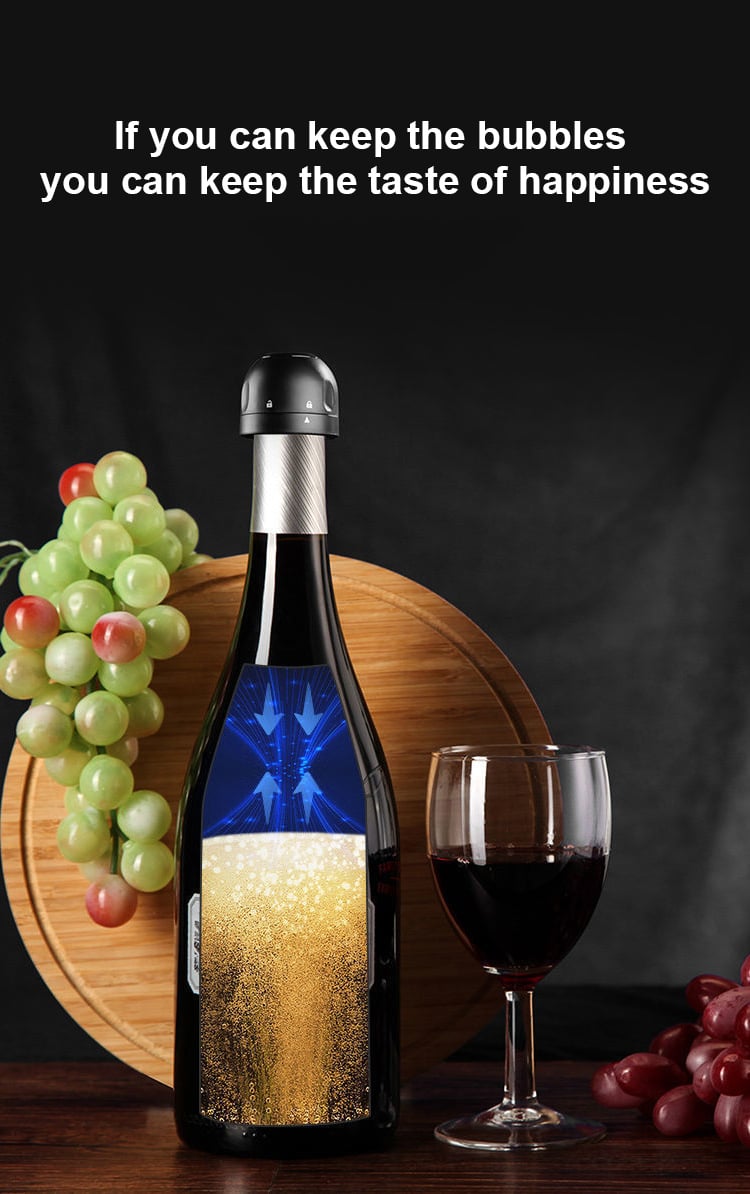 Med denne vakuumstopperen bevares boblene i champagne og andre kullsyreholdige drikker, slik at du kan nyte den friske smaken og sprudlen lenger,uten tap av kvalitet.