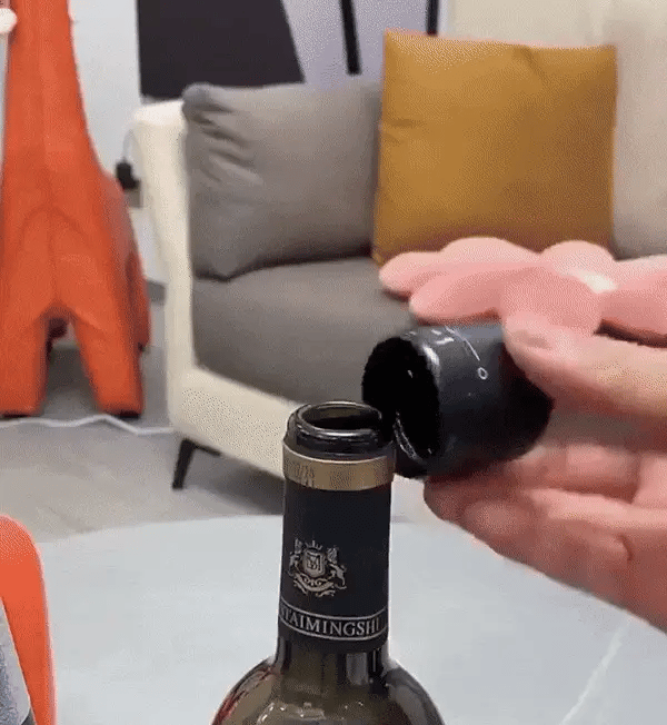 Med et enkelt trykknappsystem er det en lek å lukke vinflasken din. Bare plasser korken på flasken; ingen kompliserte trinn eller verktøy nødvendig!