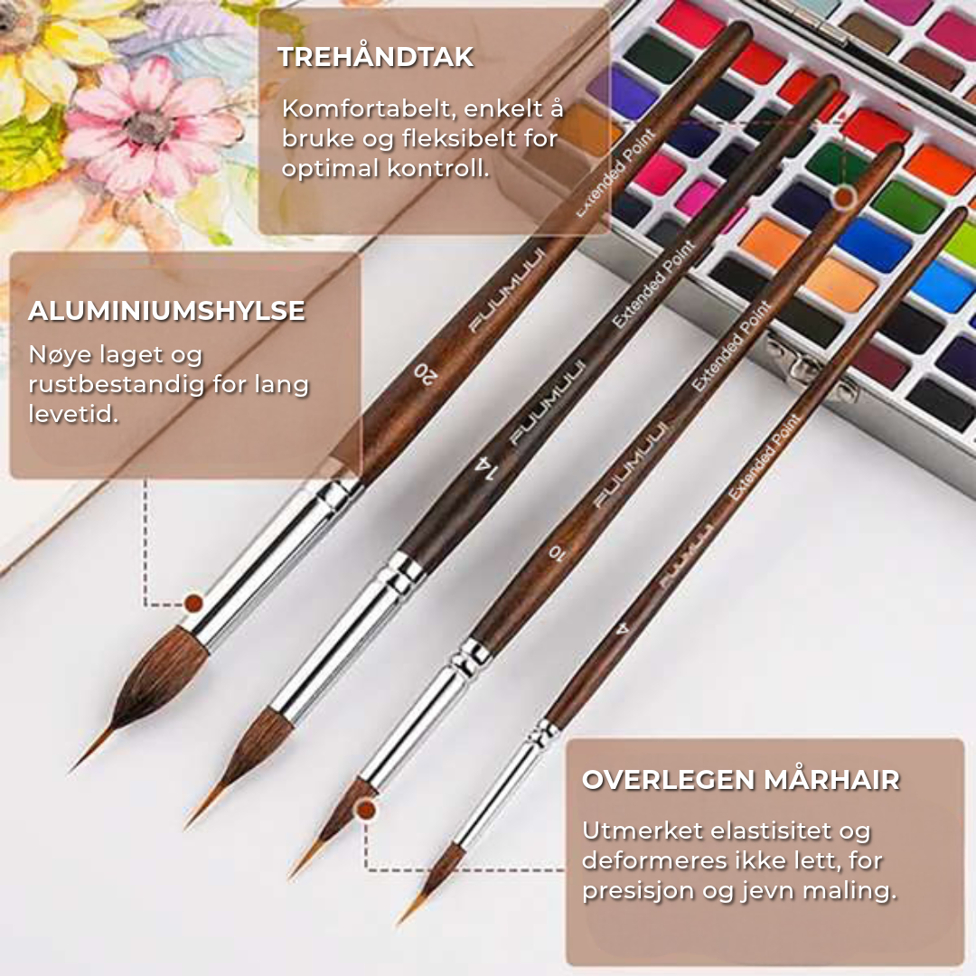 Oppdag uslåelig kontroll & presisjon med akvarellpenslene. Takket være den perfekte balansen nyter du flytende linjer og detaljert arbeid, som gjør hvert penselstrøk til et kunstverk i seg selv. Føl kraften av presisjon i hendene dine og la kreativiteten blomstre helt!