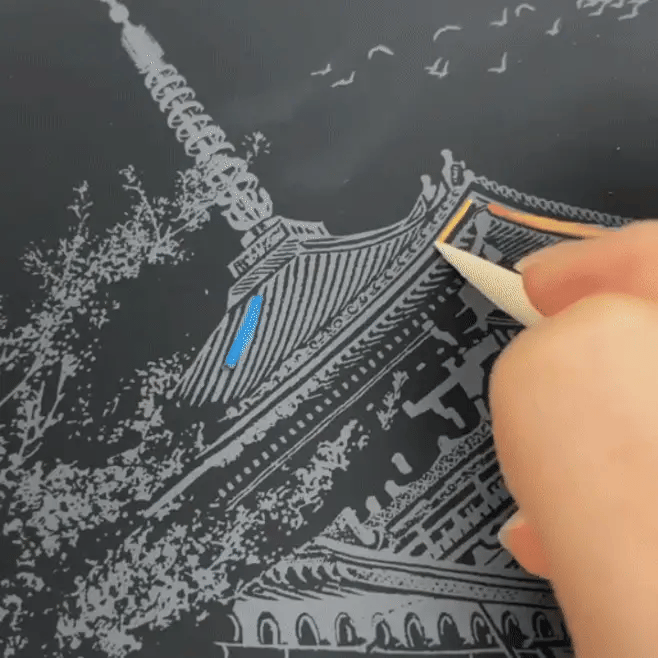 Har du noen gang drømt om å lage kunst uten å bruke pensel? Med disse kunstverkene blir dette virkelighet! Skrap bort overflaten og avslør skjulte kunstverk i all sin fargerike prakt.