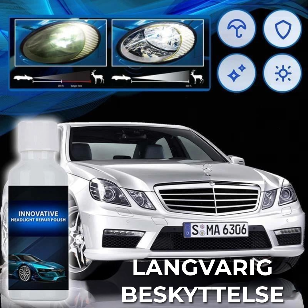 Ingen grunn til å vente i flere uker eller betale for dyre behandlinger, for vår profesjonelle poleringspasta fjerner umiddelbart matte flekker, gulning og små riper, slik at frontlyktene dine får en krystallklar og skinnende finish.