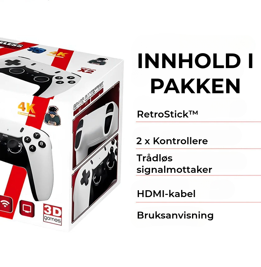 Nyt en omfattende samling av retrospill direkte fra din egen stue. Koble bare USB-pinnen til HDMI, og start spillingen.