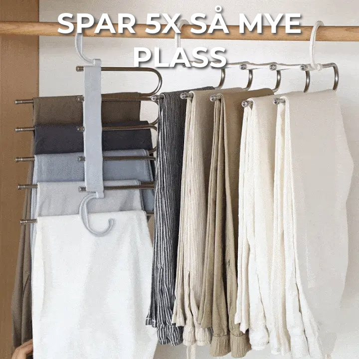 Dette innovativeopphengssystemet gjør det mulig å henge opp opptil 5klesplagg på plassen til bare 1 kleshenger. Frigjør umiddelbart plass til mer klær eller bedre organisering.